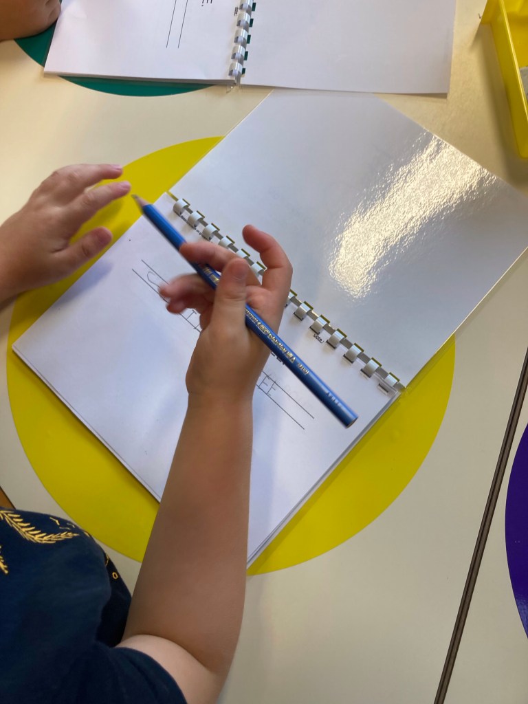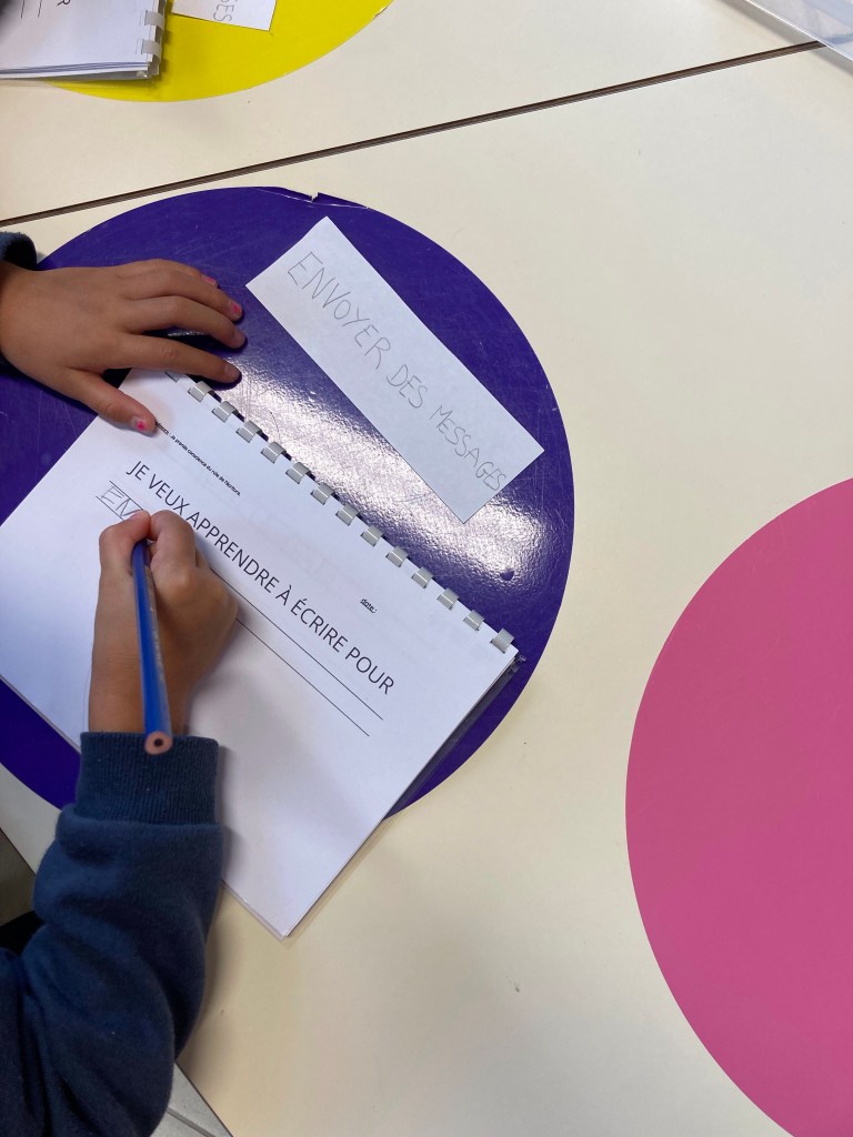 Mais, nous ne nous sommes pas arrêtés là dans notre test. Nous avons utilisé les crayons à papier bic HB pour écrire dans notre cahier d’écrivain et pour réaliser des séances de tenue du crayon. Je les ai trouvés vraiment bien et les élèves arrivent bien à les utiliser. Ils sont solides et j’ai rarement eu à les tailler en un mois. Voici quelques photos de nos séances.
