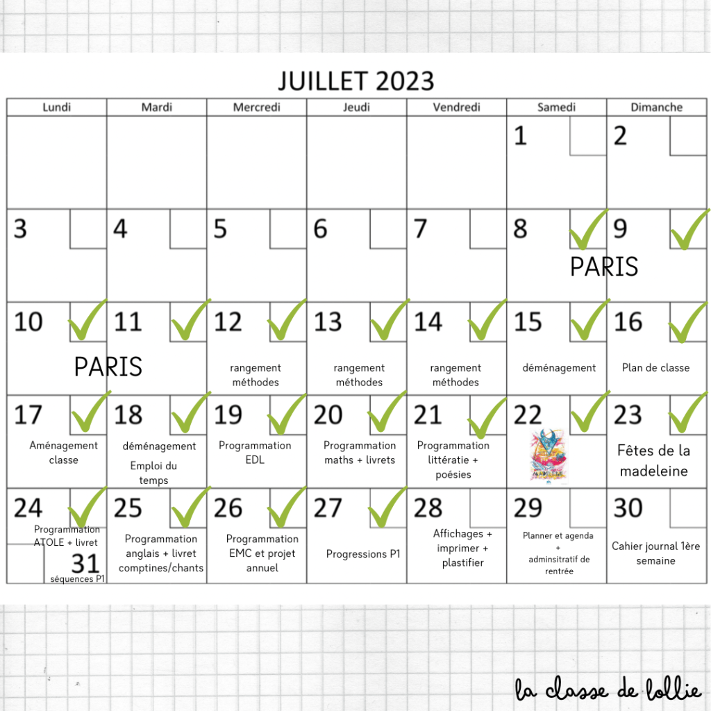 Par quoi commencer ? Je dirais qu’il y a beaucoup à faire mais qu’avec une bonne organisation, ça peut être rapide et efficace. J’ai démarré par me faire un planning de l’été à partir de ma to-do-list, avec les contraintes familiales et j’ai essayé de doser ce que je pouvais faire ou non dans la journée et/ou la soirée.