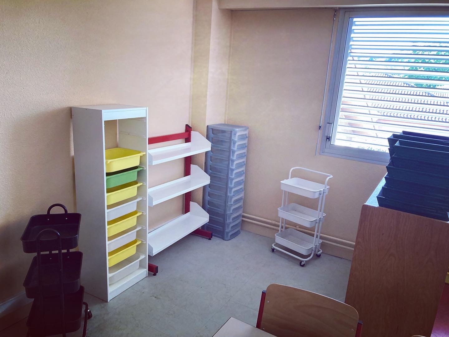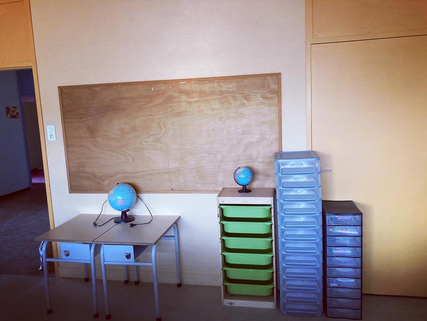Le vendredi des vacances scolaires, j’ai été voir ma classe et j’ai déposé mes affaires de classe dans la salle à côté afin de pouvoir stocker car il n’était pas envisageable pour moi de toute garder à la maison. J’en ai profité pour mesurer ma future salle de classe ainsi que les tables et les meubles présents. Je trouve que pour se projeter, il est important de faire un plan d’aménagement de sa classe. Ça évite d’une de perdre du temps sur place et de deux de se rendre compte de ce que l’on peut y mettre !
