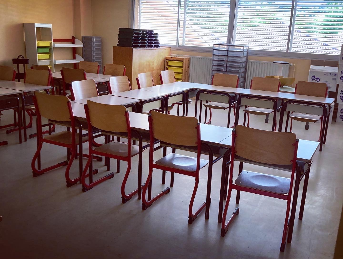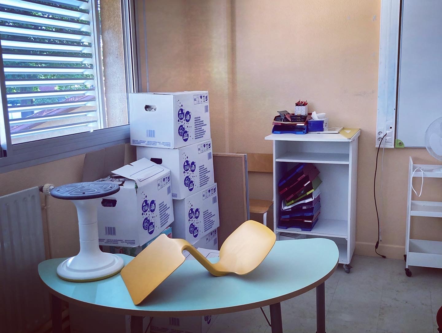 Pour ma part, je travaille de façon flexible et la première chose que je fais, c’est retirer toutes les meubles inutiles et qui prennent beaucoup de places dans ma classe. J’ai commencé par enlever le bureau et je voulais mettre l’armoire dans un coin de la classe mais elle n’allait pas, alors, je l’ai sortie.